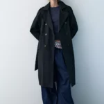 معطف طويل أنيق من Zara بتصميم كلاسيكي عصري، مزود بحزام بإبزيم حلقي وياقة عريضة لإطلالة راقية وموثوقة طوال الموسم.